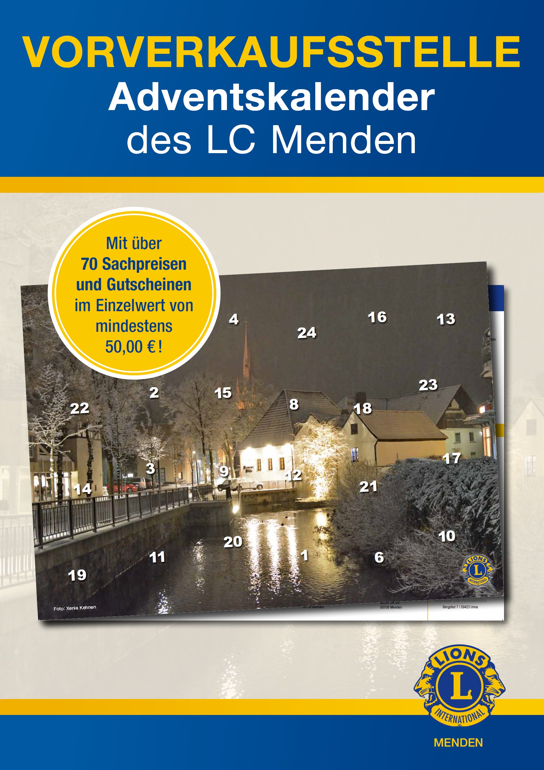 Adventskalender Lions Club | Noch 270 tage bis das erste türchen geöffnet wird. 4278 1.000,00 € barpreis lions club bitburg prüm 4498 30,00 € barpreis. Schauen sie also immer einmal wieder vorbei. Mit den einnahmen aus der aktion können wir unsere. Seit fast 15 jahren bieten die lions clubs rosenheim und bad aibling ihren adventskalender an.